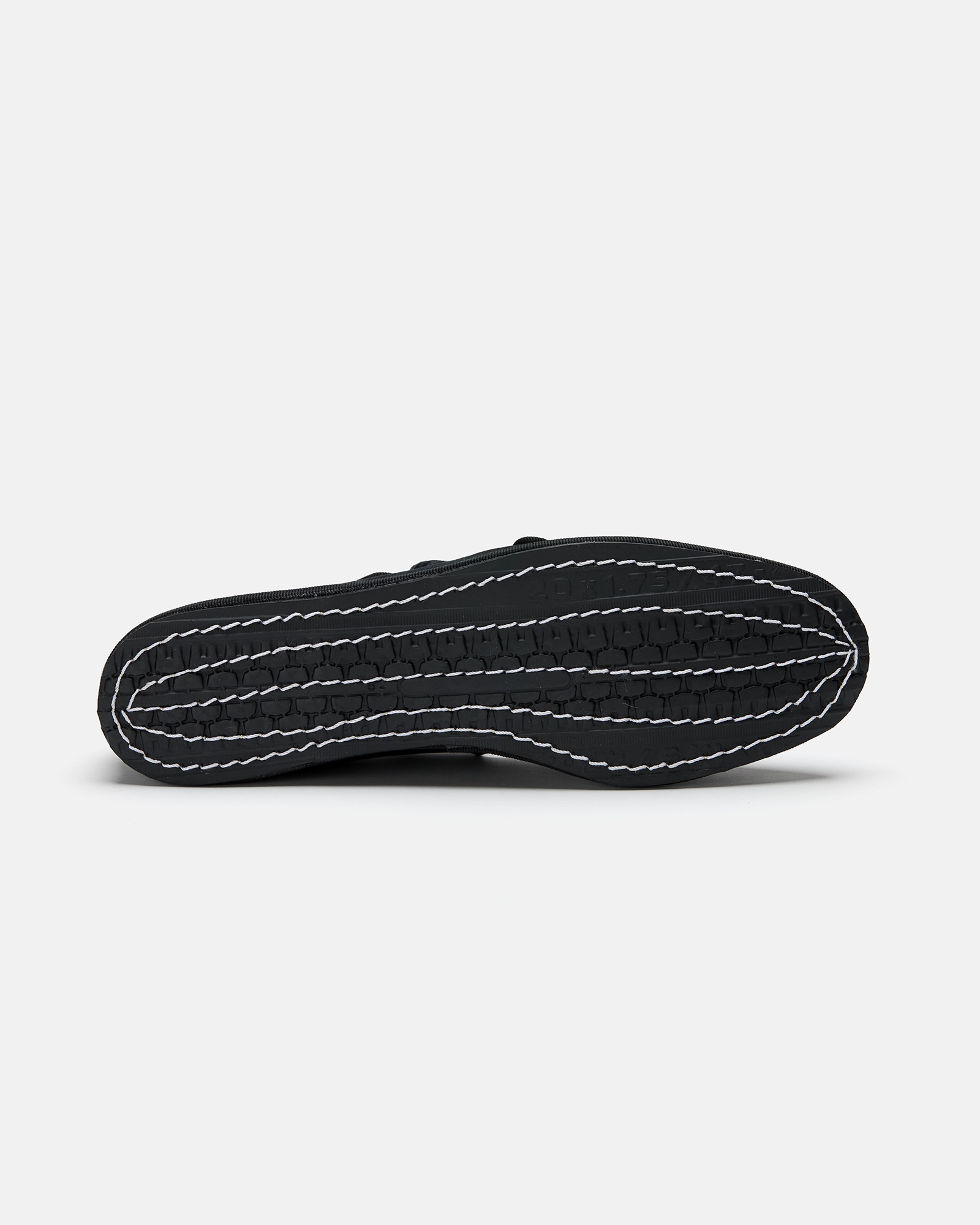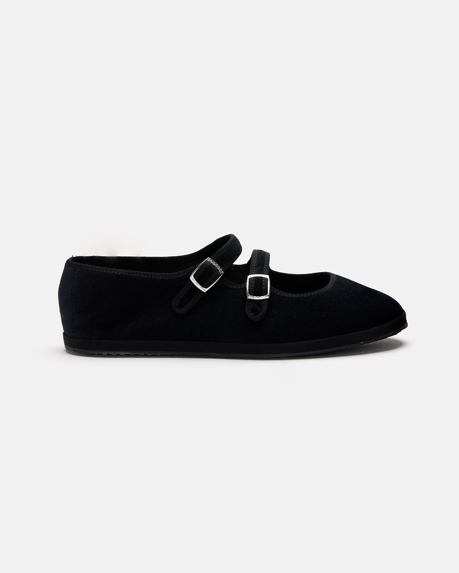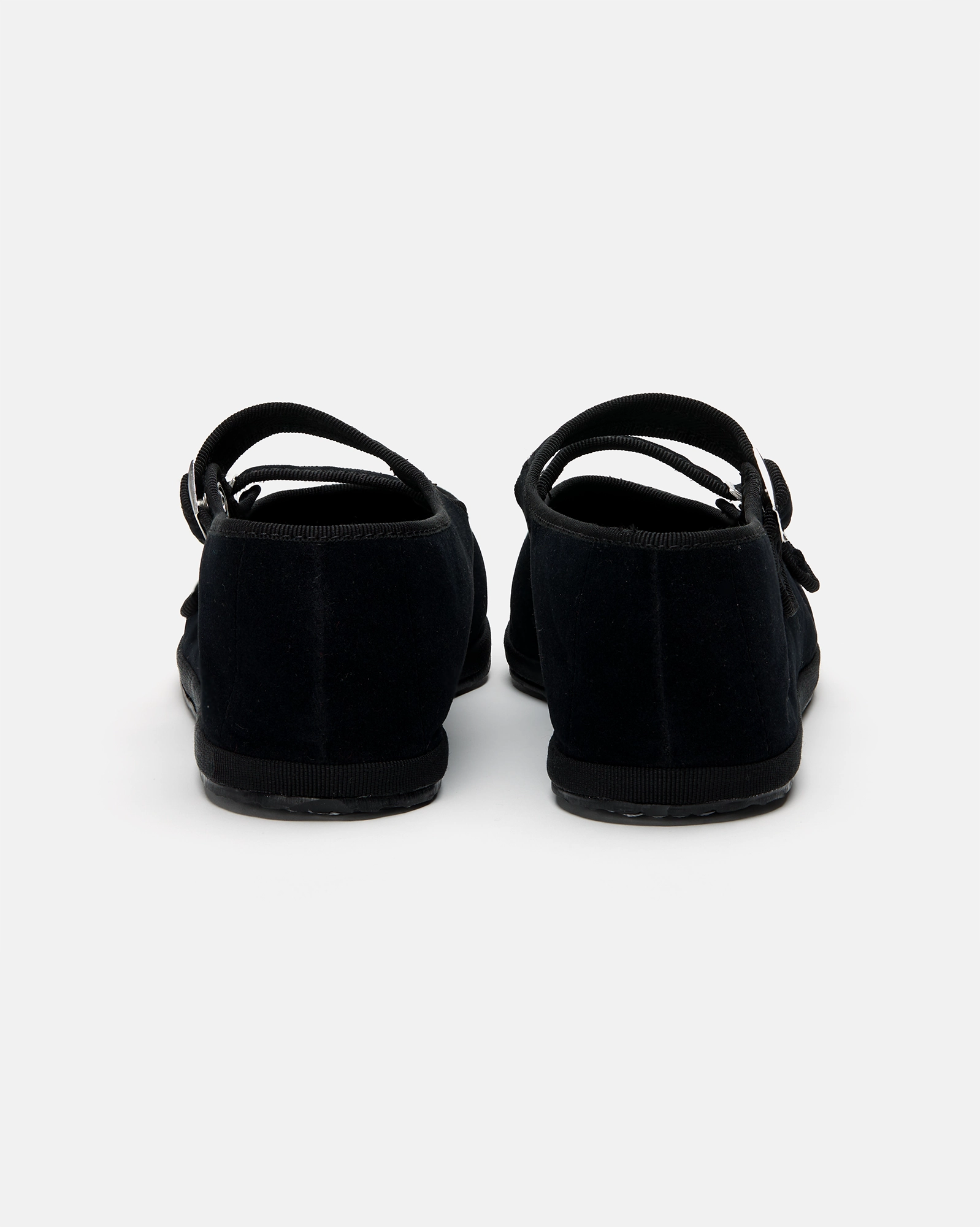 • Friulane in black velvet with tone-on-tone grosgrain edging